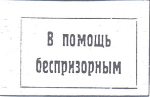 1926(?) г. Разм. 50 х 33 мм. Одноцветная печать на бумаге различных цветов. В центре в прямоугольной рамке разм. 23 х 40 мм текст в две строки: «В помощь беспризорным».