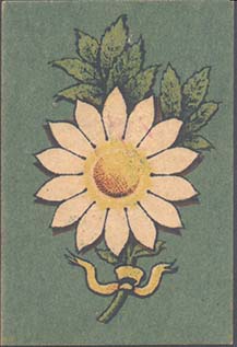 1917 г. Разм. 36 х 53 мм. Двухцветная и многоцветная печать на белой бумаге. В центре на сплошном фоне цветок ромашки с двумя листьями и стеблем, перевитым внизу лентой.