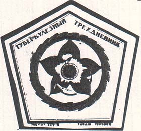 1925(?) г. Разм. 49 х 66 мм. Двухцветная печать на тонкой плотной белой бумаге. В толстой прямоугольной рамке разм. 44 х 62 мм в центре цветок мака. Сверху наклонно в две строки текст: «Туберкулезный трехдневник». Внизу аббревиатура «ССРБ». По углам разграничительные линии.