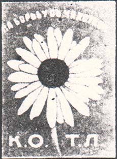 1915(?) г. Разм. 34 х 47 мм. Двухцветная печать на плотной белой бумаге. В центре на сплошном фоне цветок ромашки. Сверху полукругом текст: «На борьбу с чахоткой». Внизу аббревиатура «К.О.Т.Л.».