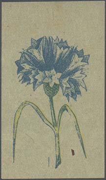 1916 г. 07.12.1916 г. Разм. 36 х 61 мм. Трехцветная печать на кремовой, окрашенной с лицевой стороны бумаге. Цветок василька.