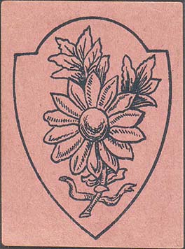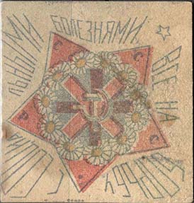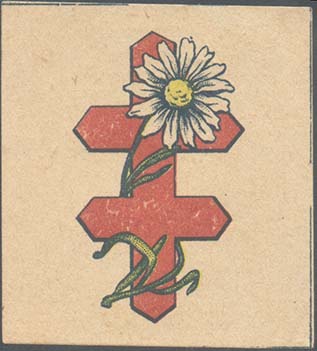 1924 г. Разм. 53 х 58 мм. Многоцветная печать на белой бумаге. В центре шестиконечный крест, обвитый цветком ромашки.