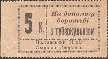 1924 г. 1924 г. Разм. по перфорации 56 х 33 мм. Одно-цветная печать на плотной светло-бежевой бумаге. Зубц. 11 1/2(?). С клеем. В декоративной прямоугольной рамке разм. 46,5 х 27 мм слева номинал. Справа текст в три строки на украинском языке: «На помощь борьбе с туберкулезом». Внизу текст в две …
