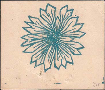 1916 г. Разм. 46 х 39 мм. Одноцветная печать на толстой белой бумаге. В центре цветок василька. По углам знака разграничительные линии.