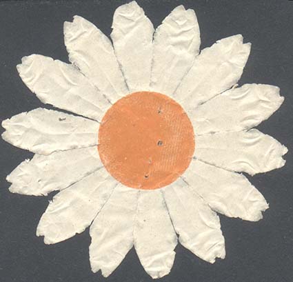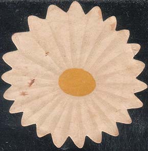 1915(?) г. Виньетка в виде цветка ромашки диам. 48 мм. Двухцветная печать на белой бумаге. Несимметричный цветок ромашки.