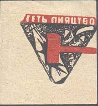1930(?) г. Разм. 70 х 100 мм. Одноцветная печать на желтоватой бумаге. Нерегулярная зубц. В центре цветок мака. По окружности текст на украинском языке: «Здоровье трудящихся – дело самих трудящихся».
