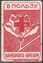 1930(?) г. Разм. рамки 22 х 33,5 мм. Одноцветная печать на белой бумаге. В рамке с закругленными краями в центре красный крест на фоне цветка мака. Сверху текст: «В пользу». Внизу текст: «Красного Креста». Внизу под рамкой мелким шрифтом выходные данные неразборчиво.