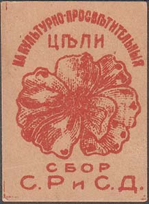 1918 г. Разм. 36 х 49 мм. Одноцветная печать на плотной желтоватой бумаге. В центре цветок мака. Сверху текст: «На культурно-просветительные цели». Внизу текст в две строки: «Сбор С.Р. и С.Д.».