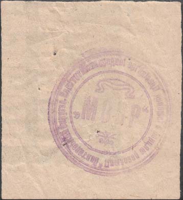 1924(?) г. Разм. 46 х 52 мм. Рисунок аналогичен предыдущему. Двухцветная печать на желтоватой бумаге. Без рисунка и текста на оборотной стороне.