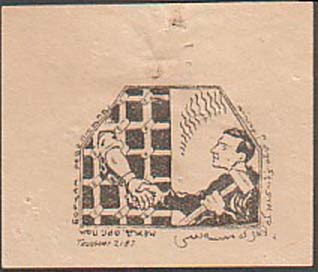 1932 г. Листок из квитанционной книжки разм. 80 х 75 мм. Одноцветная печать на желтоватой бумаге. Левосторонняя нерегулярная зубц. В прямоугольной рамке разм. 74 х 62 мм в центре текст в шесть строк: «Помни об узниках капитала. Квитанция в приеме пожертвования для жертв белого террора ... копеек.…