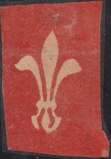 1917 г. Разм. 79 х 35 мм. Одноцветная печать на тонкой желтоватой бумаге. В центре на сплошном фоне скаутский значок.