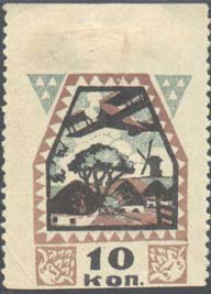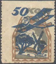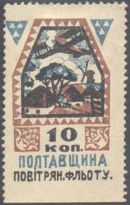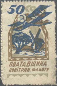 1924 г. Разм. рамки 31 х 48 мм. Трехцветная печать на белой бумаге. Зубц. 11 1/2. Различные рисунки. Внизу текст на украинском языке: «Полтавщина воздушному флоту».