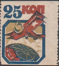 | В центре в восьмиугольной рамке самолет-биплан над земным шаром. Сверху номинал. Внизу текст в две строки. | |||||||