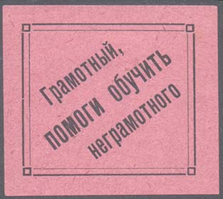 | Текст в три строки: «Грамотный, помоги обучить неграмотного». | |||||