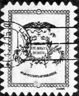 1914 г. Разм. 32 х 39 мм. Одноцветная печать на бумаге различных цветов. Зубц. 11 1/2 и Б.З. Сверху орел с георгиевским крестом, ниже венок, в центре которого текст в три строки: «Воинам передовых позиций». Ниже полукругом текст: «От Общества Русских Антиквариев». Без номинала.