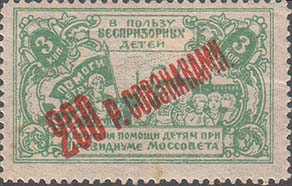 1923 г. Второй выпуск. Разм. и рис. марок предыдущего выпуска с красной диагональной надпечаткой номинала в совзнаках. Зубц. 10 3/4, 11, 11 3/4 и их комбинации.
