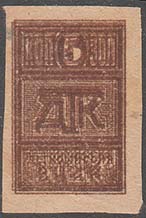 | Разм. рамки 19 х 28,5 мм. В центре в прямо-угольной рамке аббревиатура «ДТК». Сверху в отдельной рамке номинал. | |||||||