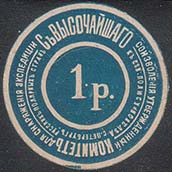 1912(?) г.   Круг, диаметром 28 мм. Одноцветная печать на белой бумаге. В центре в двойной круглой рамке номинал, нанесенный фиолетовым ручным штампом. На фоне толстой наружной рамки по окружности текст в две строки: «С Высочайшего соизволения утвержденный Комитет для снаряжения экспедиции к северному полюсу и по исслед[ованию]. русских полярных стран. С[анкт].-Петербург».