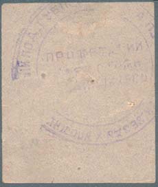 1924 г. Разм. рамки 26 х 31 мм. Одноцветная печать на бумаге различных цветов. В двойной прямоугольной рамке серп и молот, внизу номинал. По периметру между рамками текст: «Двухнедельник помощи безработным Подолии».