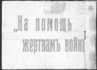 1914 г.   1914 г. Разм. 50 х 34 мм. Одноцветная, двухцветная и трехцветная двухсторонняя печать на белой бумаге. Виньетки в виде флагов стран-союзниц России в Первой мировой войне. На оборотной стороне текст в две строки: «На помощь жертвам войны».