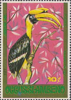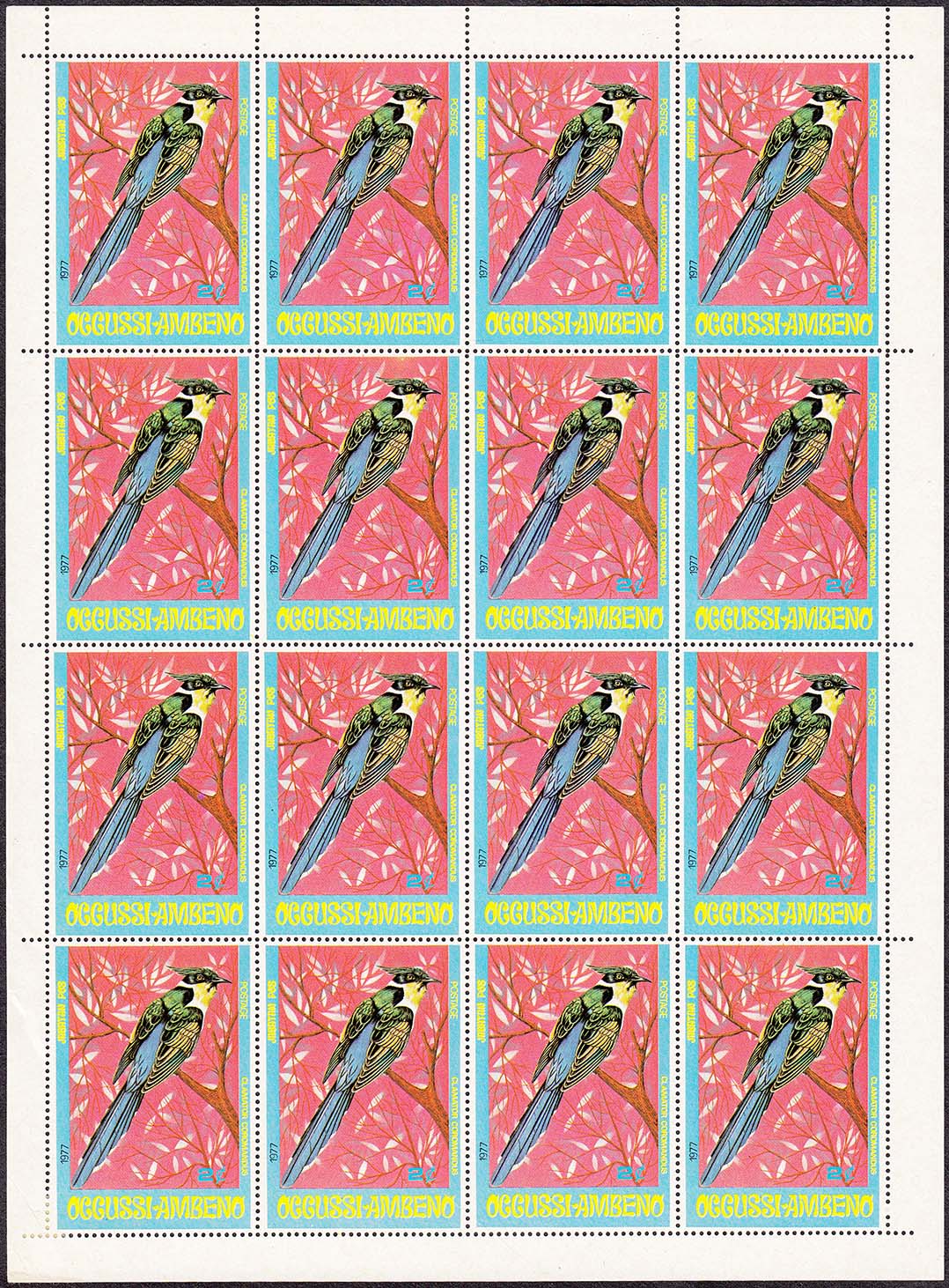 1977 г. Разм. рис. 37 х 54 мм. Многоцветная печать на белой глянцевой бумаге. Зубц. 13 1*4. С клеем. В центре птицы различных видов на фоне природы. Номинал и тексты на английском языке.