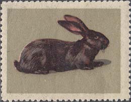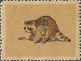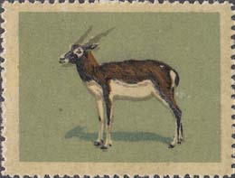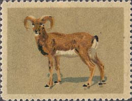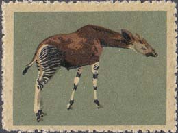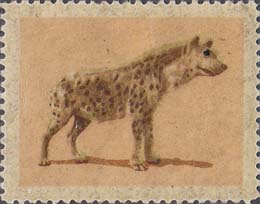 1980(?) г. Разм. рис. 37 х 28 мм. Многоцветная печать на белой бумаге с лаковым покрытием лицевой стороны. Зубц. 10 3/4. С клеем. В центре изображения различных животных.