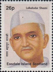 1997 г. Разм. по перф. 30 х 41 мм. Многоцветная печать на белой глянцевой бумаге. Зубц. 12 1/2. С клеем. В центре портреты индийских политических деятелей.