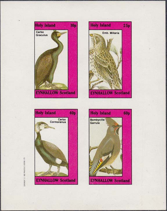 1982 г. Разм. 25 х 44 мм. Многоцветная печать на белой глянцевой бумаге. Зубц. лин. 10 3/4 и Б.З. С клеем. В центре в прямоугольной рамке птицы различных видов и пояснительный текст на английском языке. Сверху и снизу название страны на английском языке и номинал.