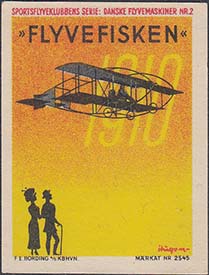 1960(?) г. Разм. рис. 31 х 40 мм. Многоцветная печать на белой бумаге. С клеем. В центре различные рисунки и тексты на датском языке.