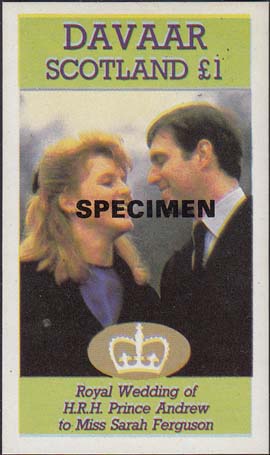 1986 г. Надпечатка различных цветов текста в пять строк: "Герцог и Герцогина Йоркские" на знаках посвященных свадьбе Принца Эндрю и С. Фергюсон.