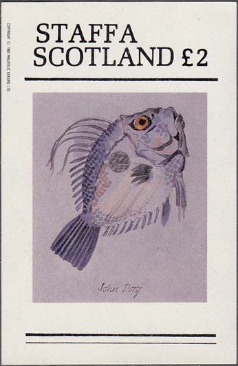 1982 г. Разм. 58 х 89 мм. Многоцветная печать на белой глянцевой бумаге. С клеем. В центре на сплошном фоне рыба. Сверху название страны на английском языке и номинал.