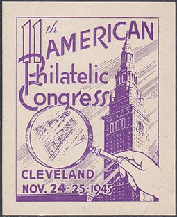 1945 г. 24.-25.11.1945 г. Разм. рамки 35 х 45 мм. В центре рука с лупой и здание. Тексты на английском языке.