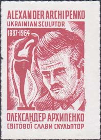 1980(?) г. Разм. по просечке 32 х 45 мм. В центре портрет А. Архипенко. Текст на английском и украинском языке.