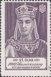 1980(?) г. Разм. рамки 24 х 38 мм. В центрне потрет Княгини Ольги. Внизу текст на английском языке в три строки.