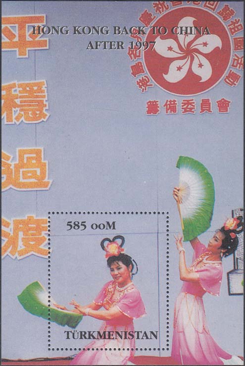 1997 г. Блок разм. 83 х 124 мм. Многоцветная печать на белой мелованной бумаге. Зубц. 13 1/2. На марке женщина в национальном костюме, название страны на английском языке и номинал. На полях блока женщина в национальном костюме, флаг Гон-Конга и тексты на китайском и английском языках.