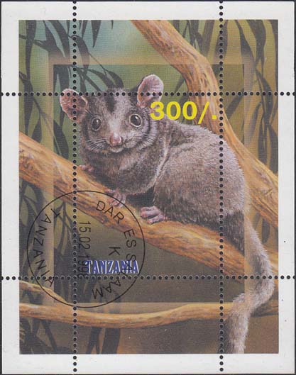 1998 г. Блок разм. 70 х 89 мм. Многоцветная печать на белой глянцевой бумаге. Зубц. 13 3/4. Разм. рис. 62 х 80 мм. В центре и на полях тупайя на фоне природы. В правом верхнем углу номинал. В левом нижнем углу название страны на английском языке.