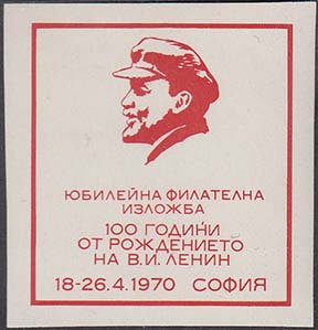 1970 г. Разм. рамки 40 х 42 мм. Одноцветная печать на белой глянцевой бумаге. С клеем. Сверху портрет В.И. Ленина в профиль. Внизу текст на болгарском языке в пять строк.