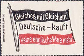 1930 г. Разм. по перфорации 41 х 31 мм. Двухцветная печать на белой бумаге. Зубцевидная просечка. С клеем. В центре флаг с древком. На флаге текст на немецком языке в три строки. Слева вертикально выходные данные на немецком языке мелким шрифтом.