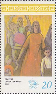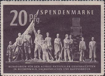 1960(?) г. Разм. рис. 54 х 38 мм. Одноцветная печать на белой бумаге. Зубц. 13 1/2. С клеем. В центре скульптурная группа. Сверху номинал и текст на немецком языке: "Благотворительная марка". Внизу текст в две строки на немецком языке.