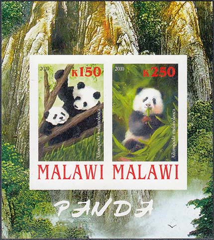 2010 г. Разм. 72 х 81 мм. Многоцветная печать на белой бумаге. Зубц. 14 и Б.З. В центре панды на фоне природы.